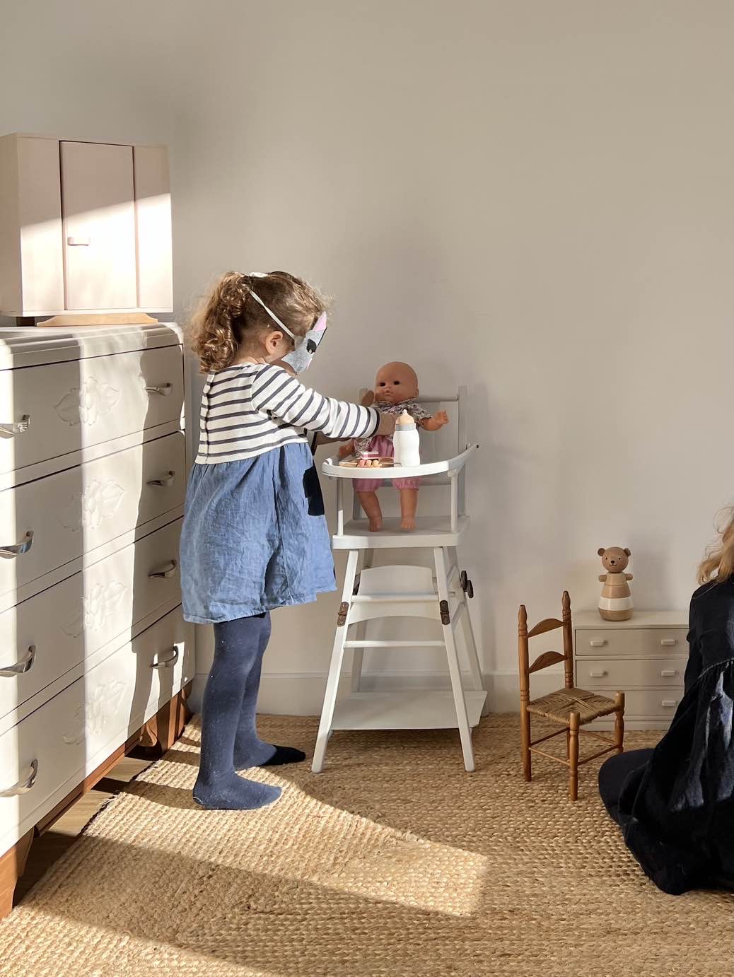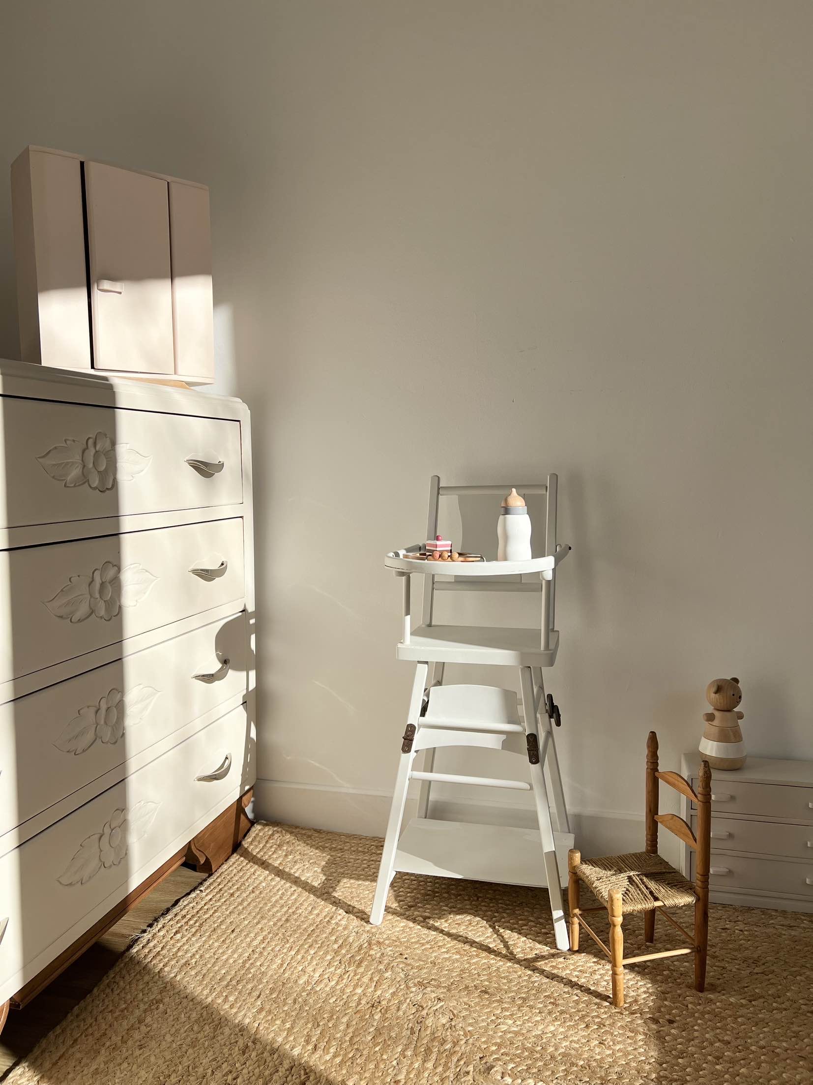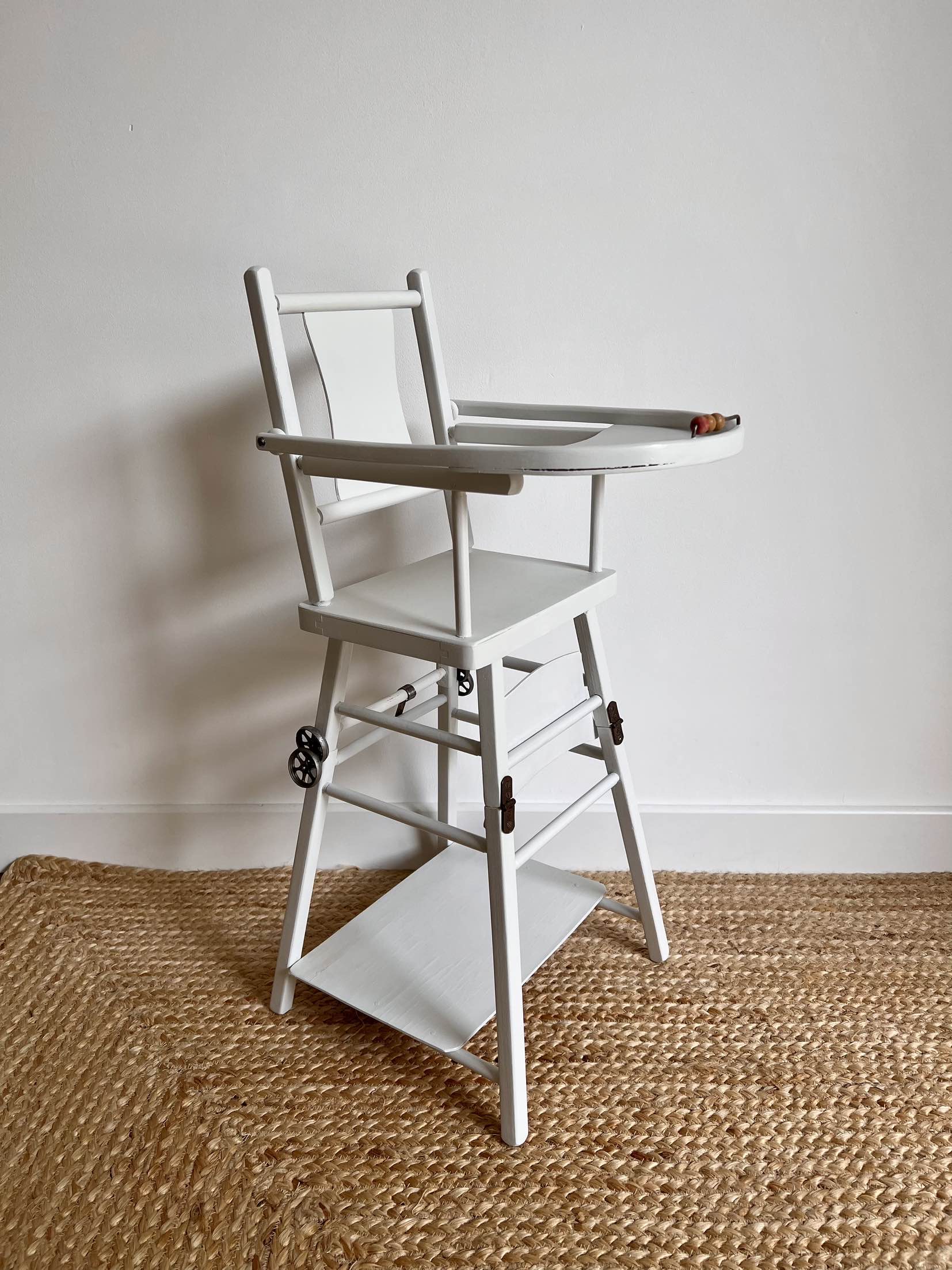 Réplique parfaite des chaises hautes anciennes pour bébé, cette petite chaise pour poupée est l’accessoire parfait d’une chambre d’enfant.