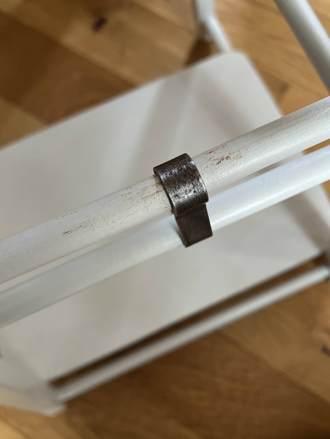 - légères traces de frottement au niveau de l’anneau métallique à l’arrière qui sert à fixer le fauteuil en position « chaise haute » (voir photographies).