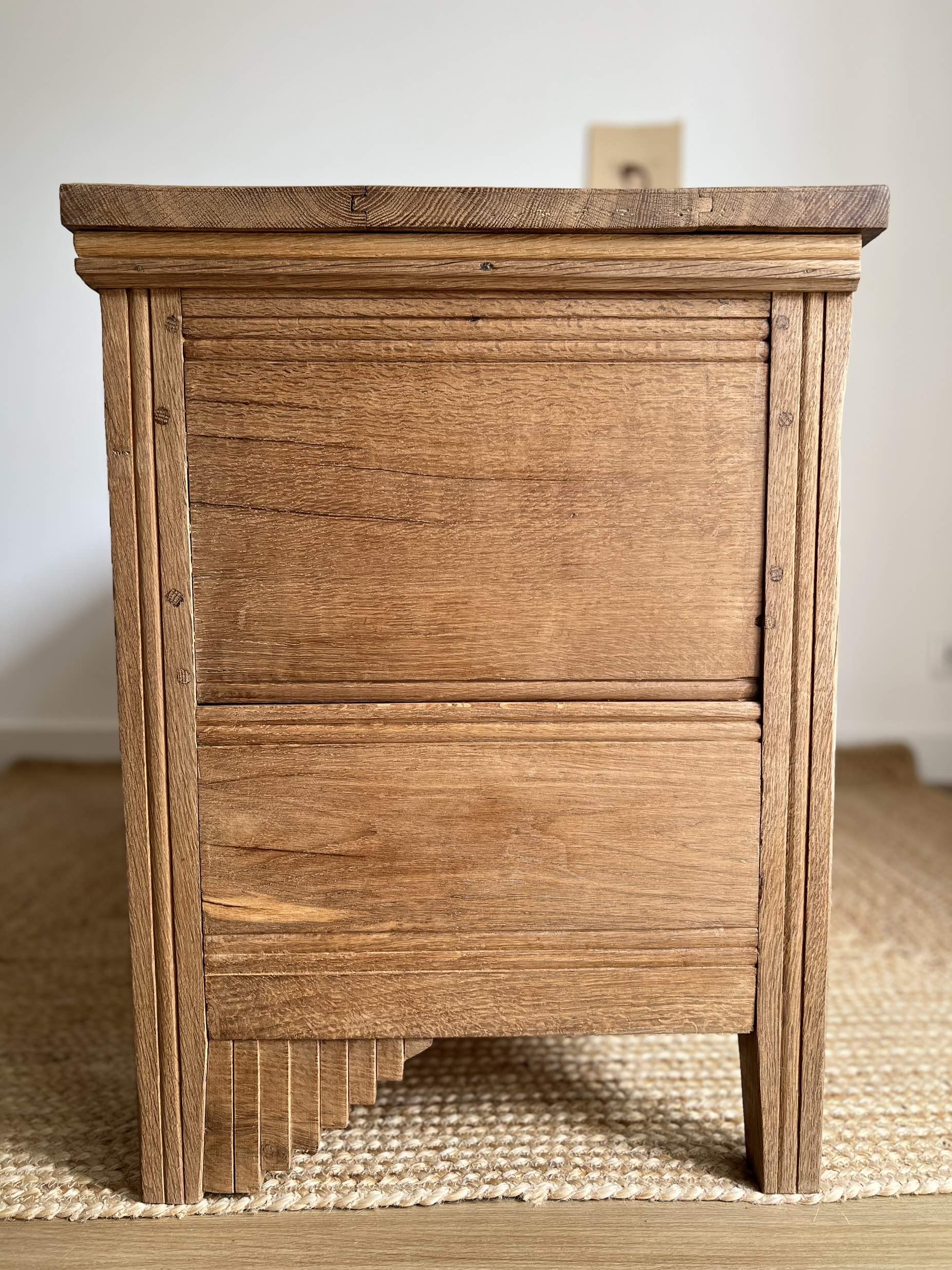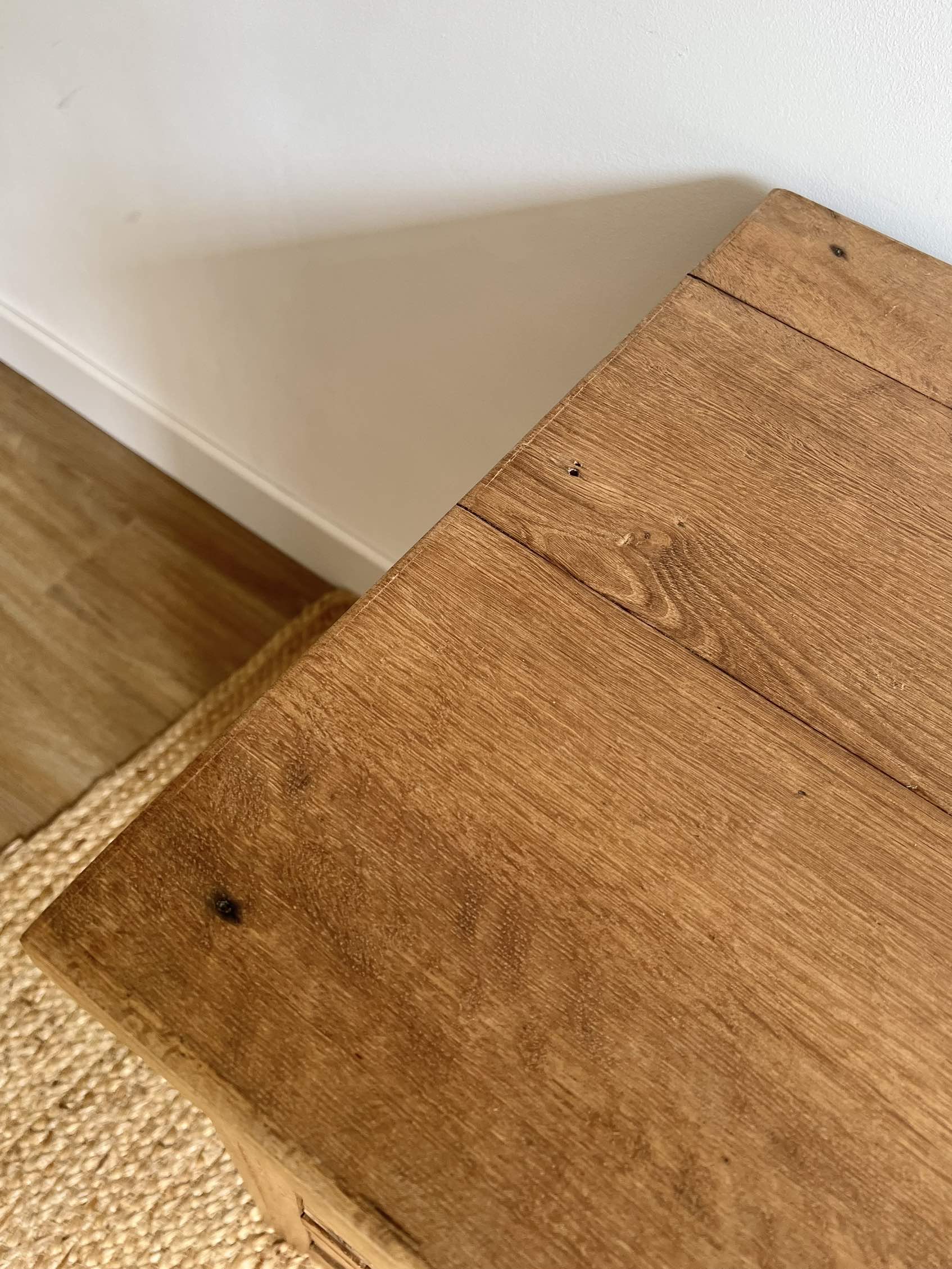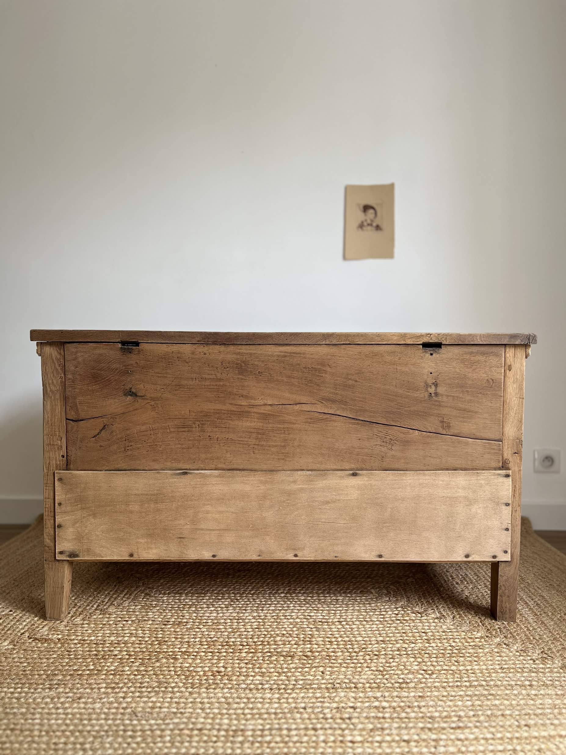 Son chêne massif de belle qualité lui confère une robustesse qui lui a permis de traverser les décennies. Il a été entièrement poncé, traité contre les insectes xylophages, puis protégé par une cire d’antiquaire incolore.