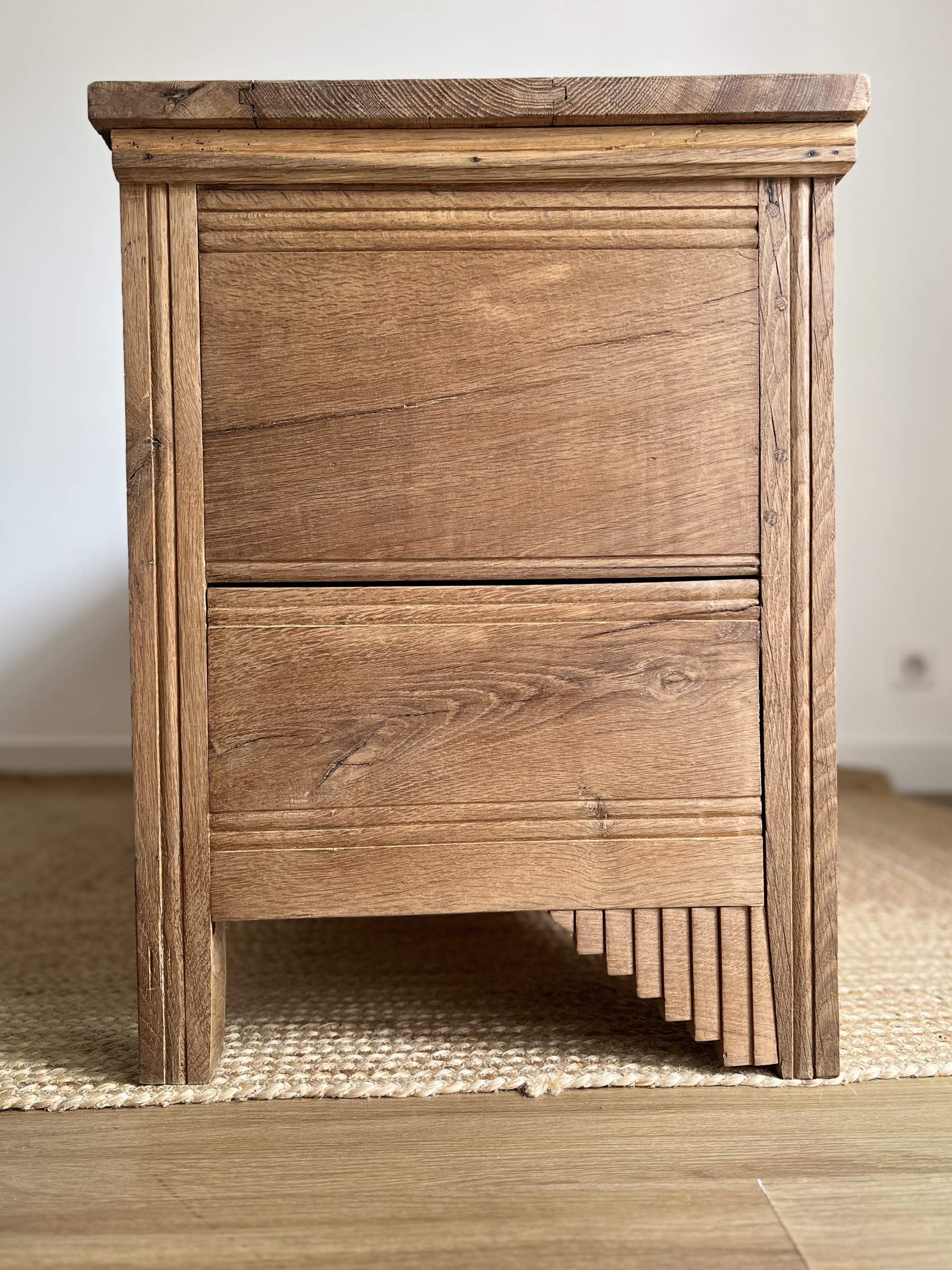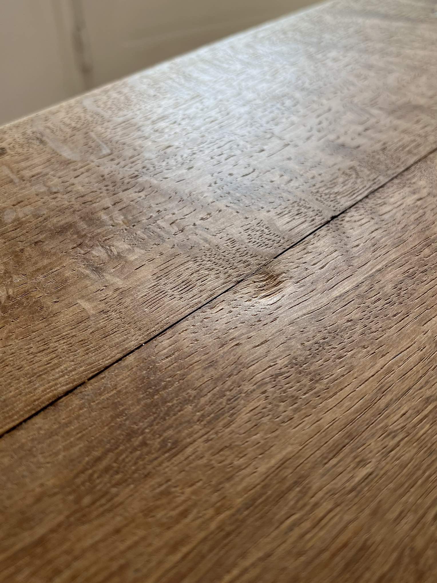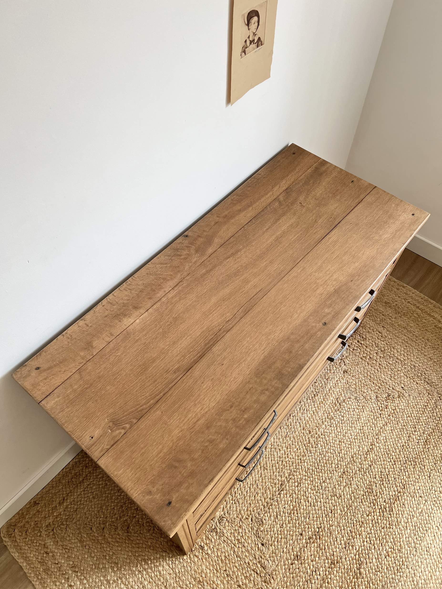 Son chêne massif de belle qualité lui confère une robustesse qui lui a permis de traverser les décennies. Il a été entièrement poncé, traité contre les insectes xylophages, puis protégé par une cire d’antiquaire incolore.