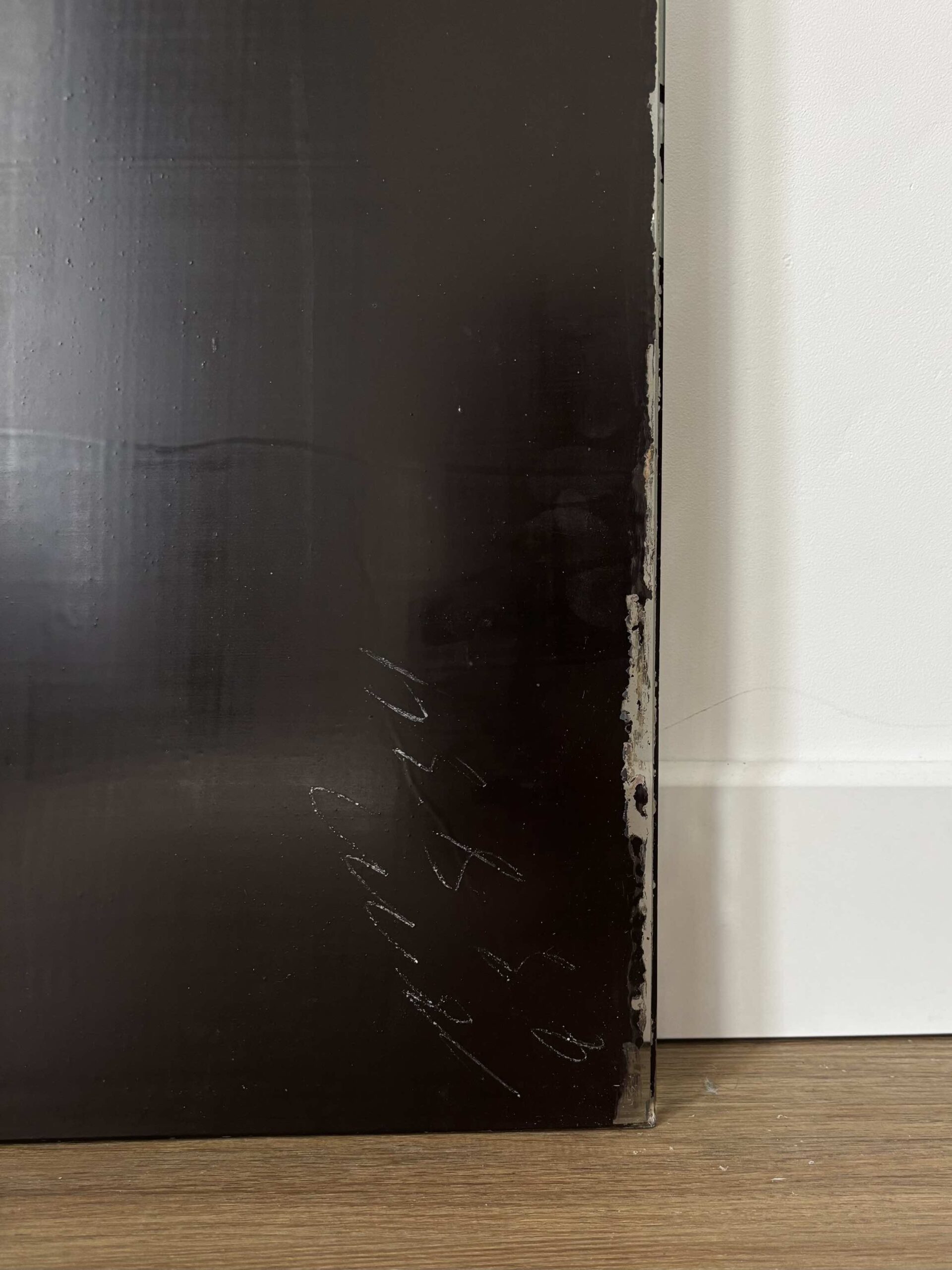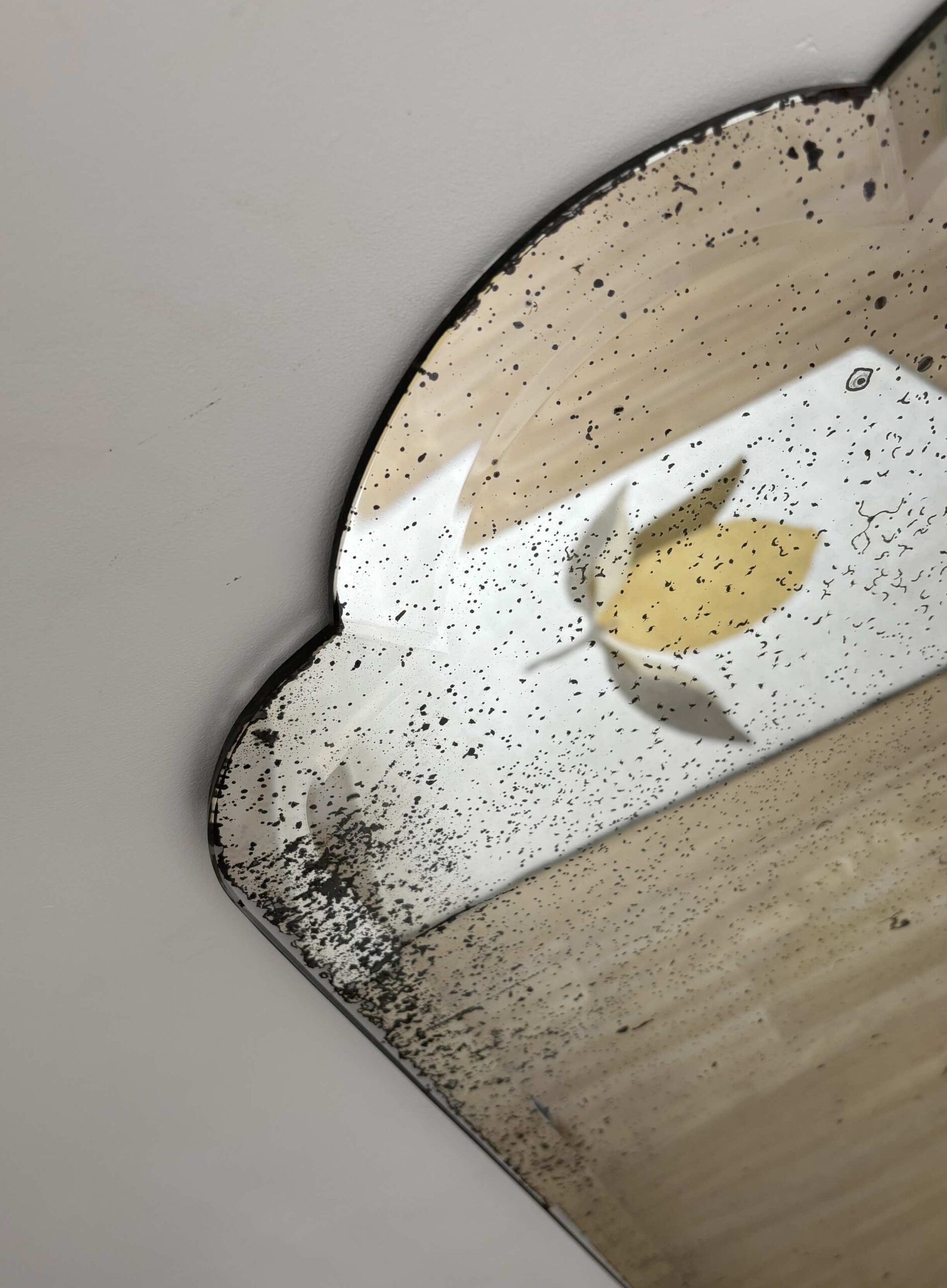 – Le tain de ce miroir présente des manques sur le pourtour et des traces de piquage, ce qui le rend tacheté (voir photographies)