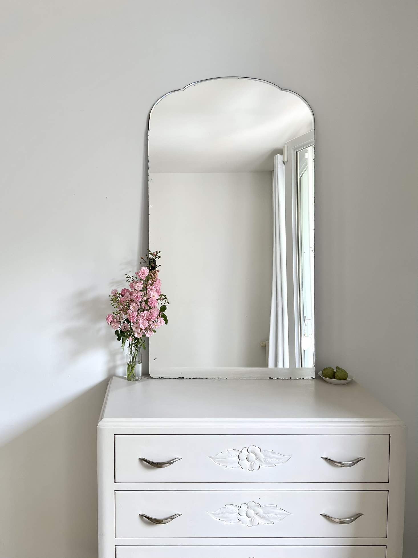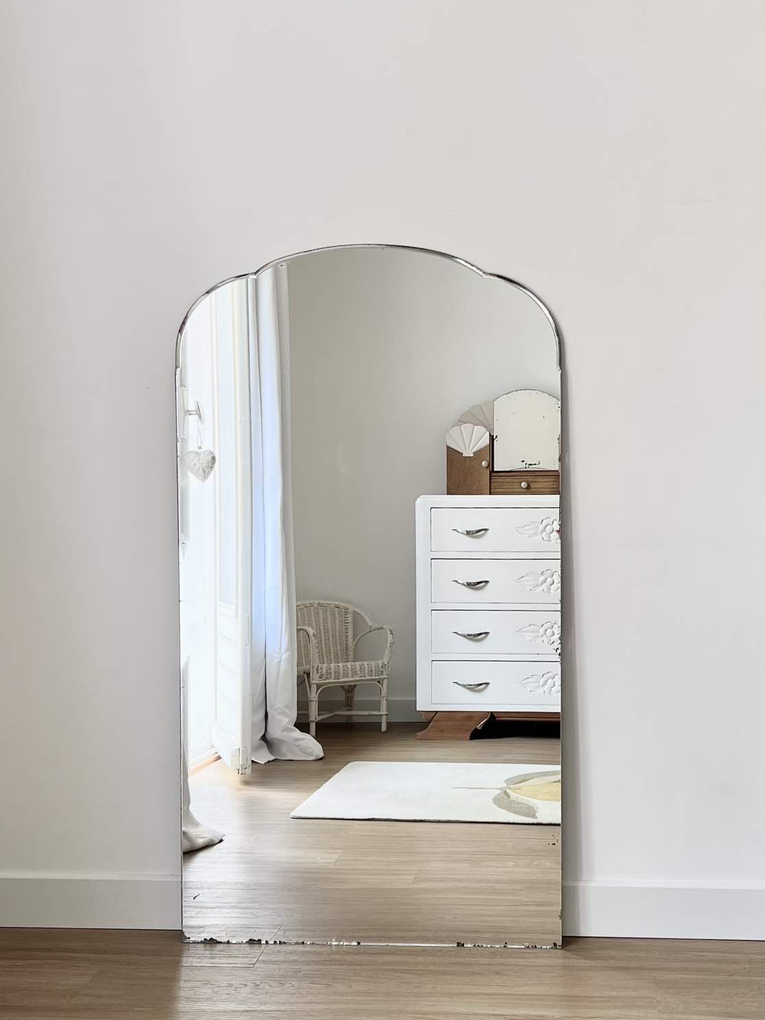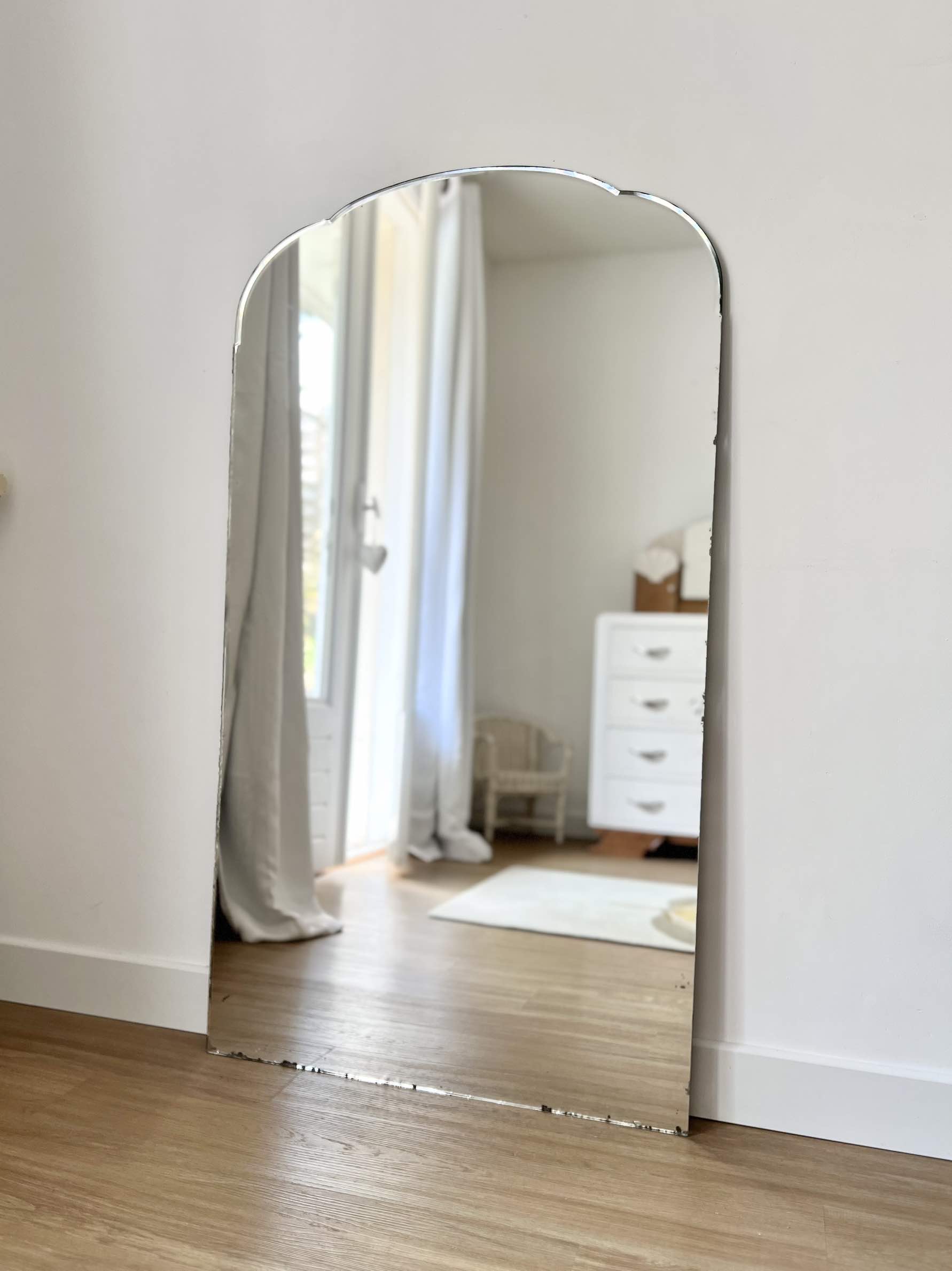 Voici un joli miroir ancien, avec ses formes arrondies.