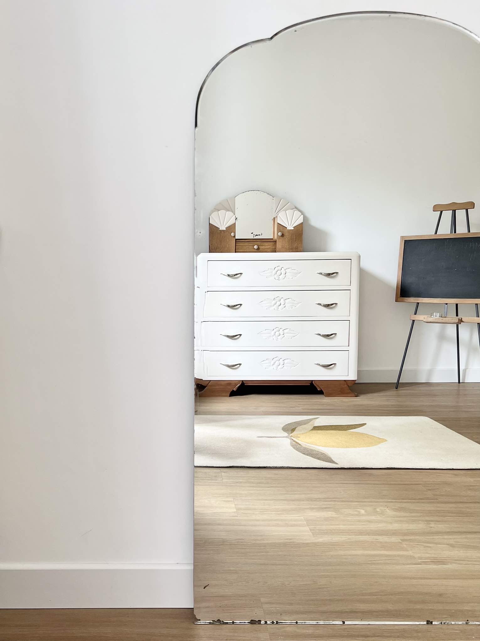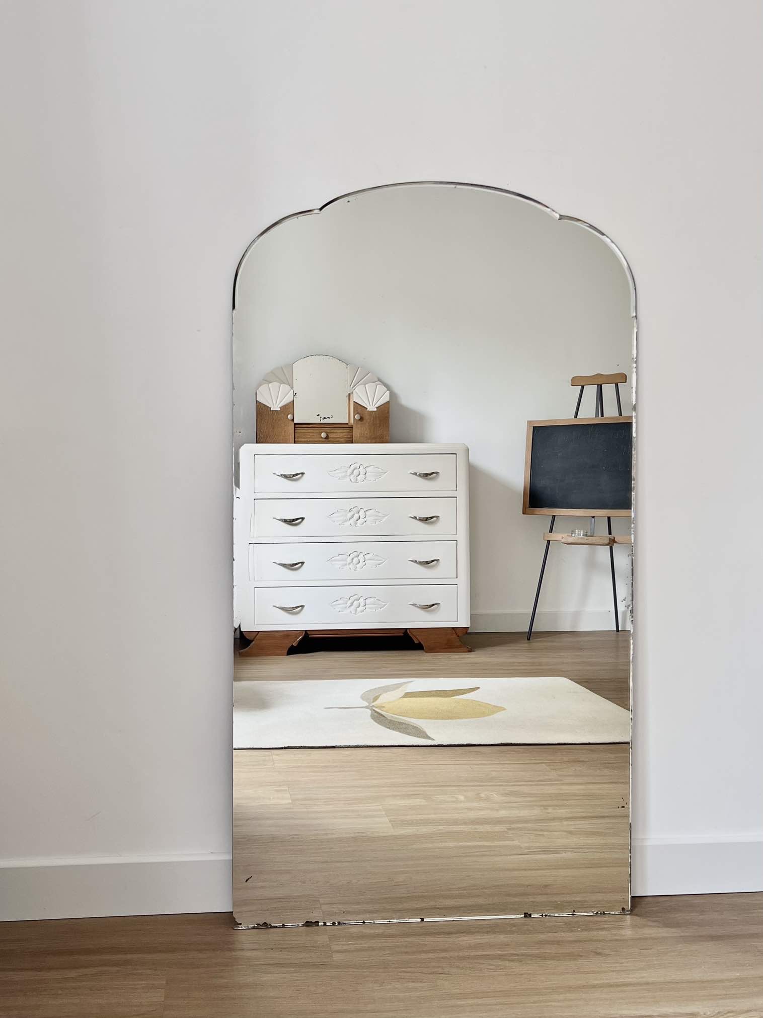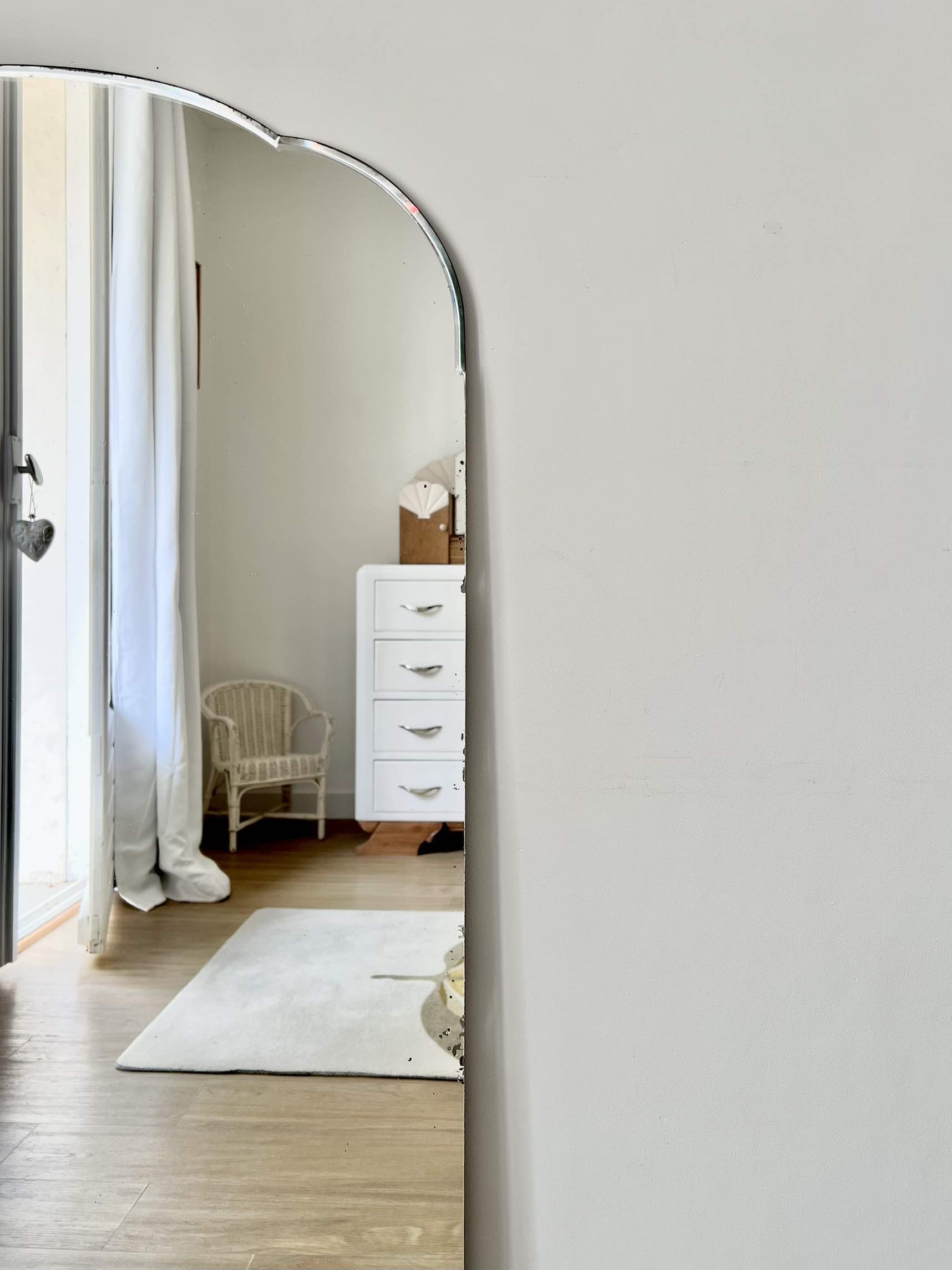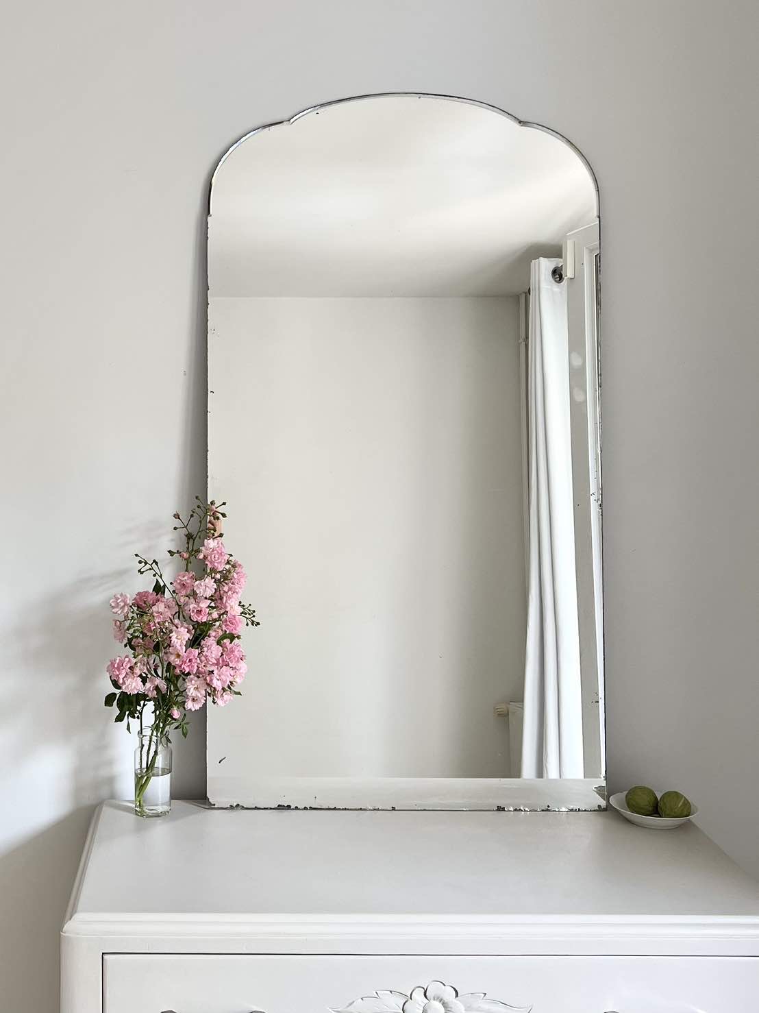 Voici un joli miroir ancien, avec ses formes arrondies.