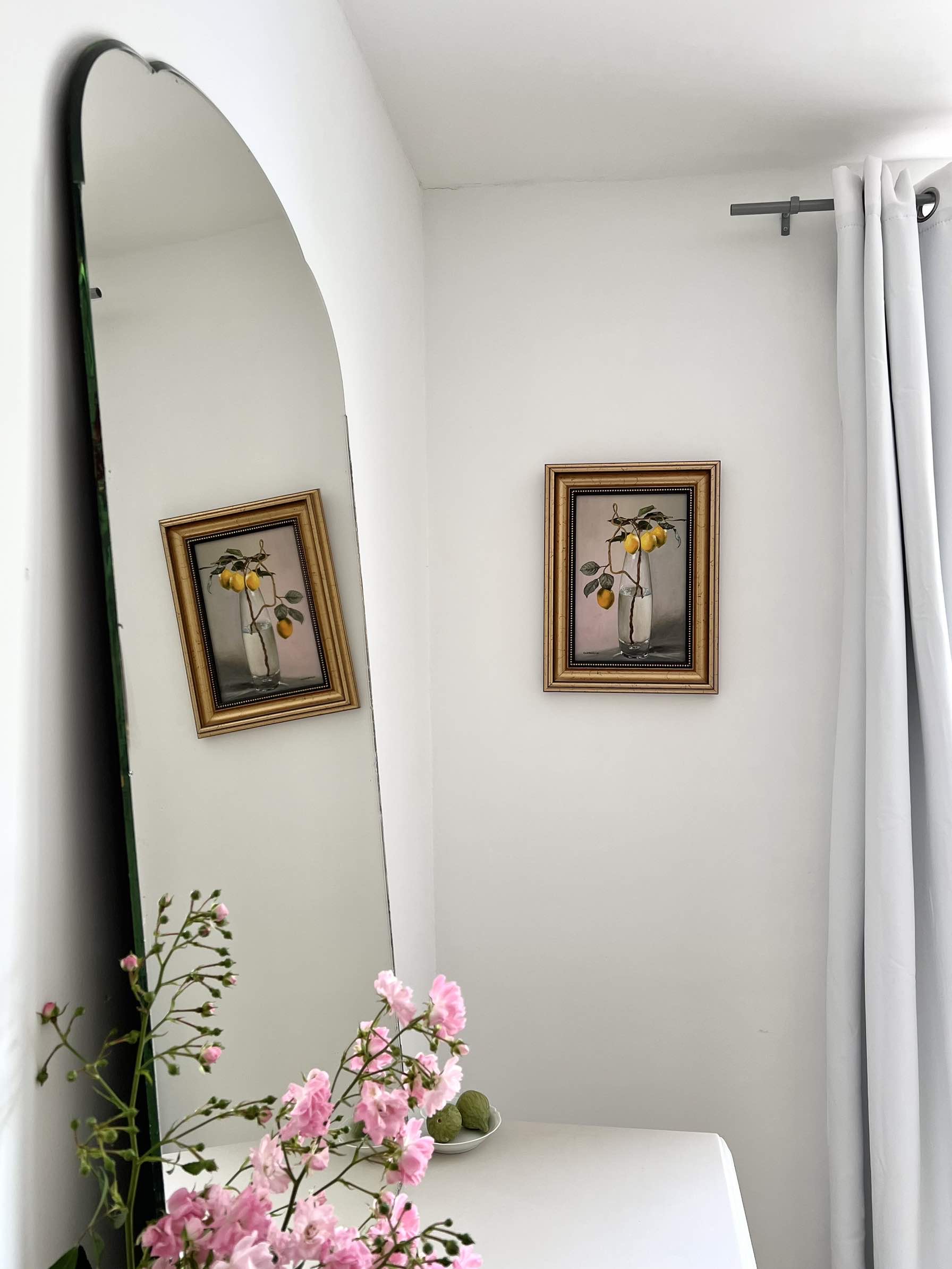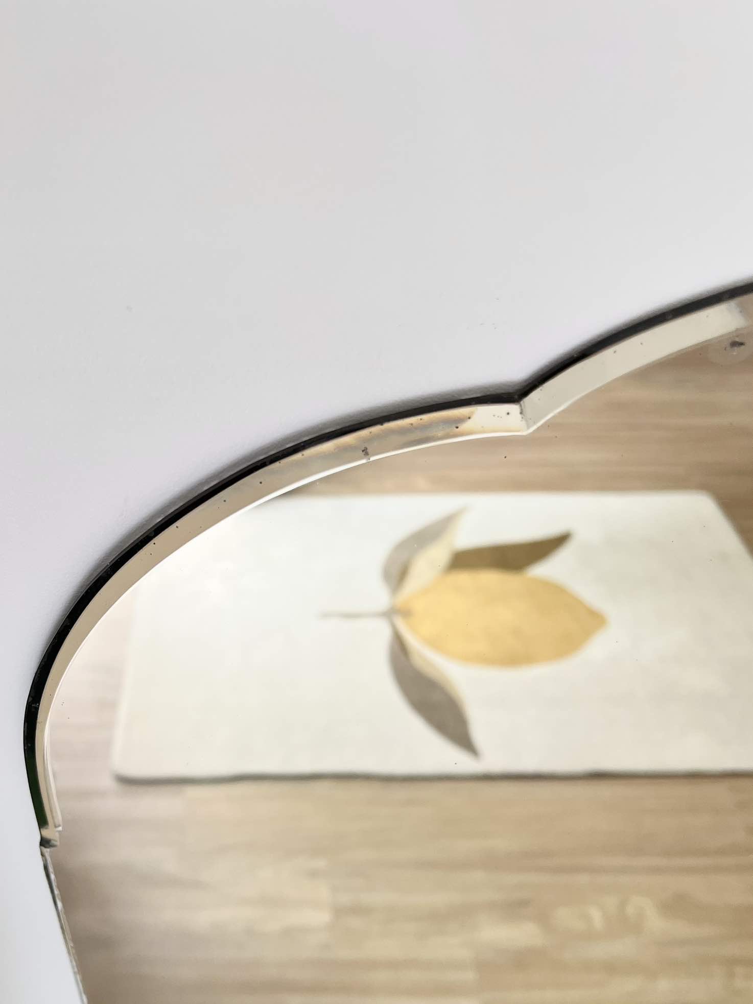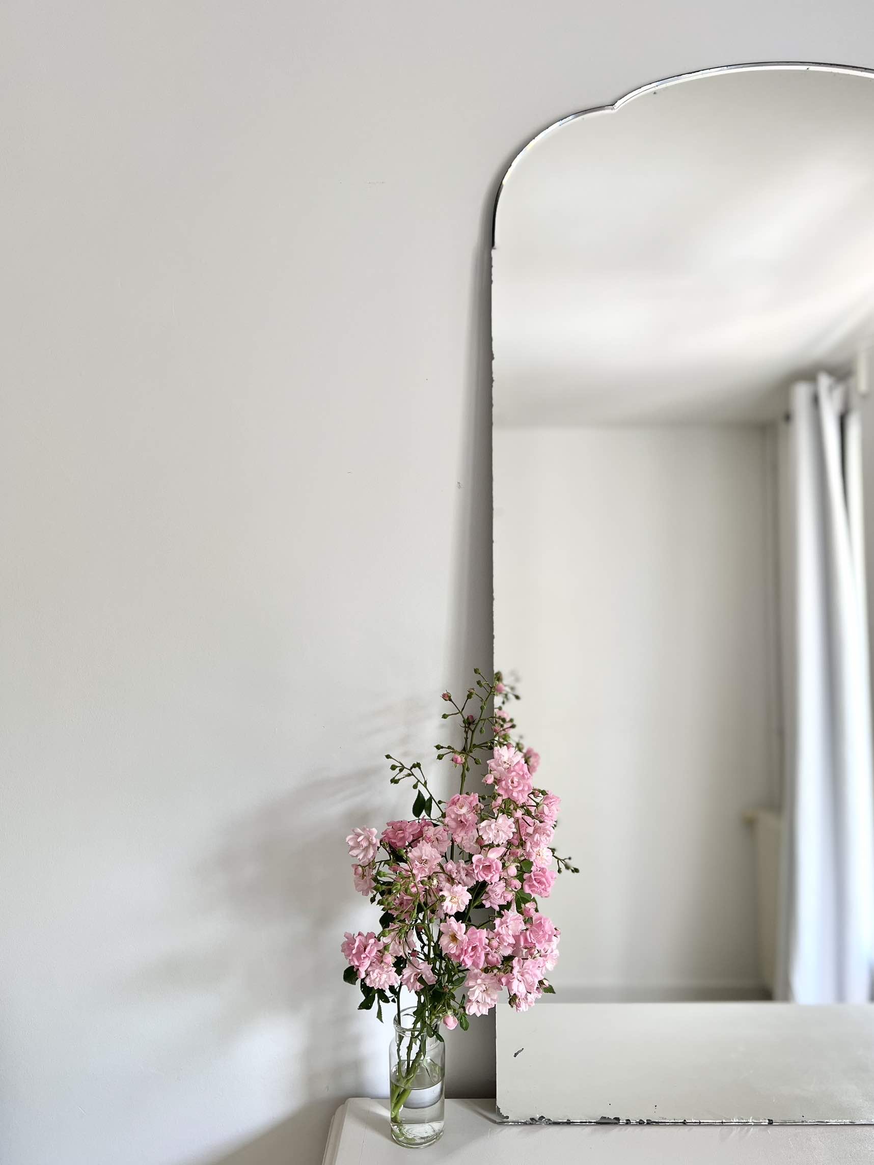 Les courbes du haut de ce miroir, finement biseautées, rappellent celles d’un nuage.